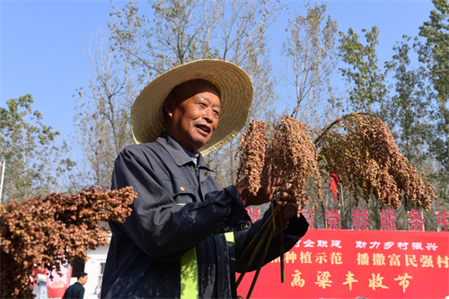 洋河股份攜手張渡村開展“打造原糧種植示范 播撒富民強村種子”高粱豐收節活動